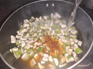 Cook the chopped raw banana in enough water by adding salt and turmeric powder.