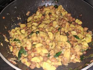 Then add cooked chana and cooked kaya into it. Mix well and cook for another 3-4 minutes and remove from the flame.