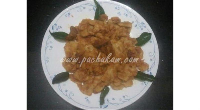 Fry the remaining half of coconut pulp in a pan. Grind the fried coconut with enough of water. 5) In a cooker firstly heat some oil, then add onion ,after it turns brown add tomato and chilly.6) Add chilli powder,coriander powder,turmeric powder & pepper powder. 7) Add the meat stock and cook it fully.