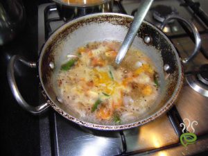 When water gets boiled add roasted rava and stir for 3 minutes.We have to stir continuously.