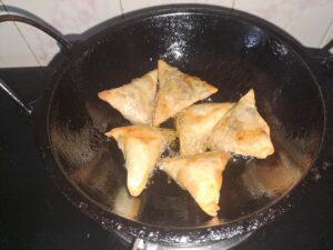 Stuff the samosa sheets with beef filling, Heare I used homemade samosa sheets, but you can use packet samosa sheets that are available in market. Wrapping a samosa can take a little practice but you can refer on any youtube videos and do that.