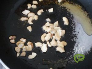 in a bowl add roasted gram jaggery mixture and fried cashews and ghee and mix well