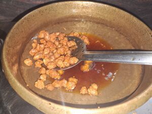 Garnish masala peanuts with fried curry leaves and enjoy.