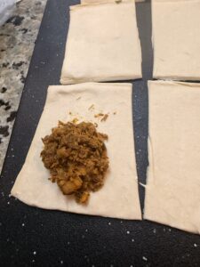Place the stuffing on one half of the sheet and fold the remaining half back.