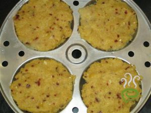 Now grease idly pan, add toor dal mixture and steam for 10 mins