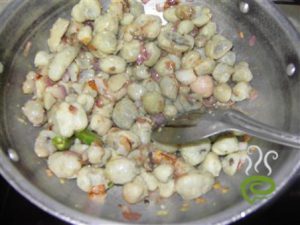 Add cooked koorka to this add salt and saute for 3 minutes.