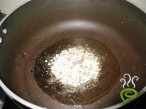 Heat the oil in a pan. When the oil is hot add the rye. After it crackles add the urad dal and let it turn a golden brown color.