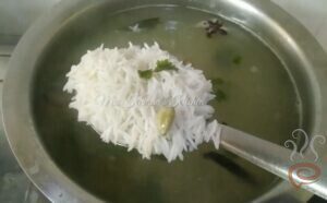 After water boils, add soaked rice and few drops of oil. Cook till it is 3/4 th cooked.