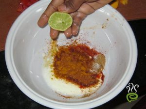 Mix the Curd, tandoori masala and red chili powder, salt turmeric together in bowl.