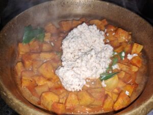 Add the ground coconut mix and combine well. Bring it to boil and remove from the flame.