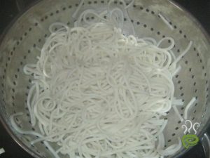 In Vessel add boiling water and salt , oil and add noodles and allow 10 min and drain water.