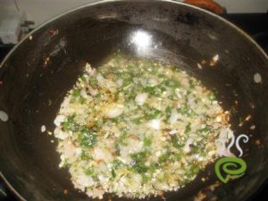 Heat oil in a pan and add the minced garlic, ginger, onion, green chilies and celery and stir fry for 2 - 3 minutes.