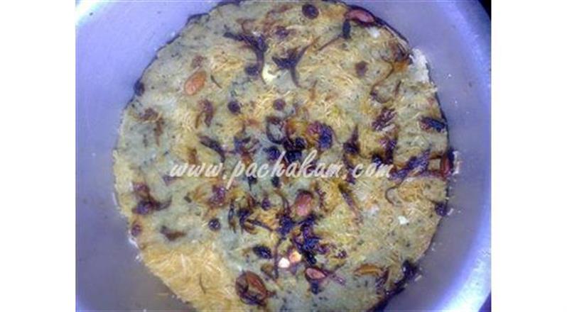 Place the semiya mixture and fried onion, raisins and almonds layer by layer in a bottom thick vessel.