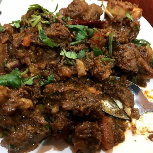 Pour that mix into the cleaned beef and add some curry leaves and mix well. Close the lid of the cooker, After the first whistle, reduce the flame and cook for 30 minutes in low flame. Turn off the flame. Once the pressure is all released open the cooker.