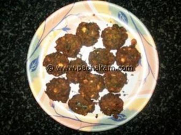 Knead together all the ingredients onion, sooyi chappu, green chillies, ginger, turmeric powder, chilly powder, salt, curry leaves with the chickpeas paste.