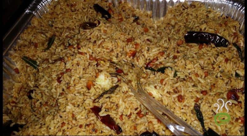 Add the tamarind masala to the rice and mix well till the rice is well coated with the masala.