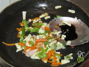 This recipe uses a can of Chop Suey vegetables and a can of mixed Chinese vegetables. egg also goes nice with this.