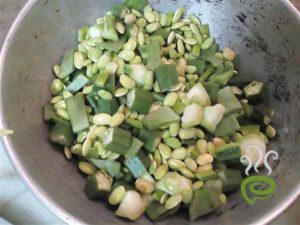 chop the lady's finger, ridge gourd, broad beans, and raw banana